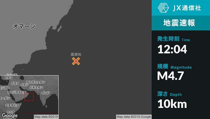 | 震源地 | オマーンのSayyから東南東295kmの地点 |