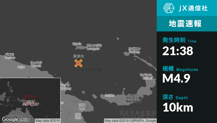 | 震源地 | パプアニューギニアのLorengauから南南西132kmの地点 |