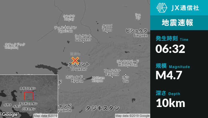 | 震源地 | カザフスタンのSaryaghashから西南西17kmの地点 |