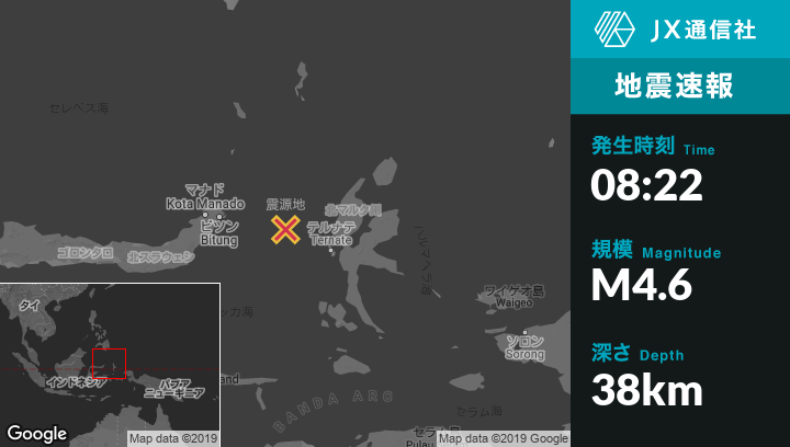 | 震源地 | インドネシアのKota Ternateから西北西117kmの地点 |