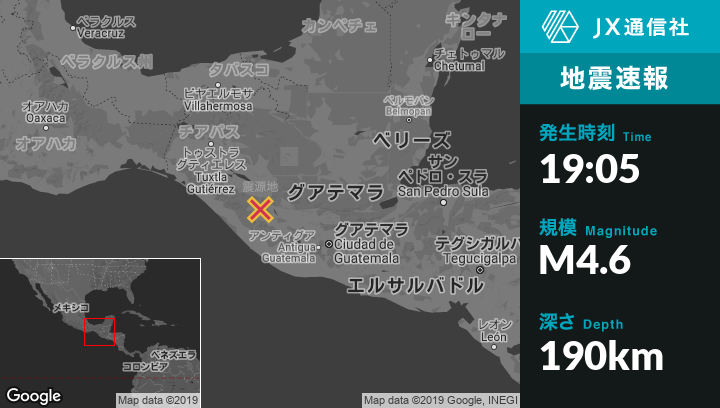 3月14日 19:05頃、グアテマラのCuilcoから北西11kmの地点でM4.6の地震がありました。
