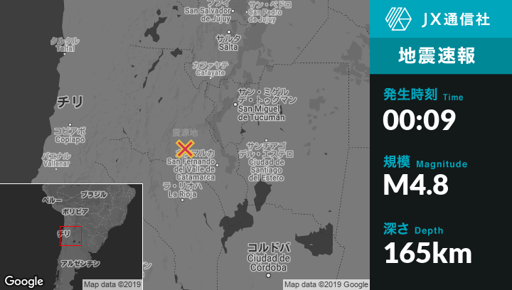 | 震源地 | アルゼンチンのBelenから南東38kmの地点 |