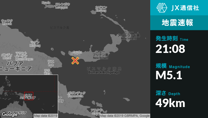 | 震源地 | パプアニューギニアのKandrianから西80kmの地点 |