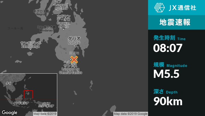 | 震源地 | フィリピンのMangaから東南東15kmの地点 |