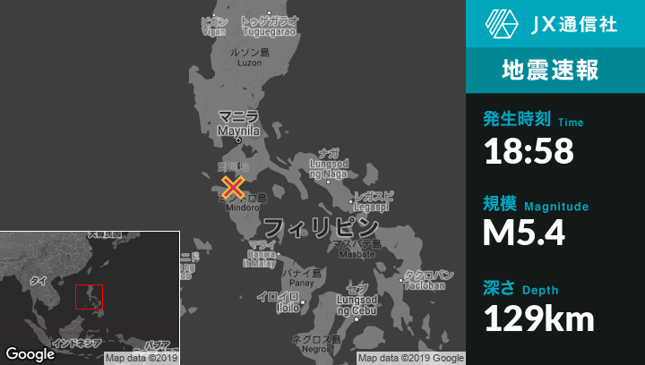 | 震源地 | フィリピンのTingloyから南南西6kmの地点 |