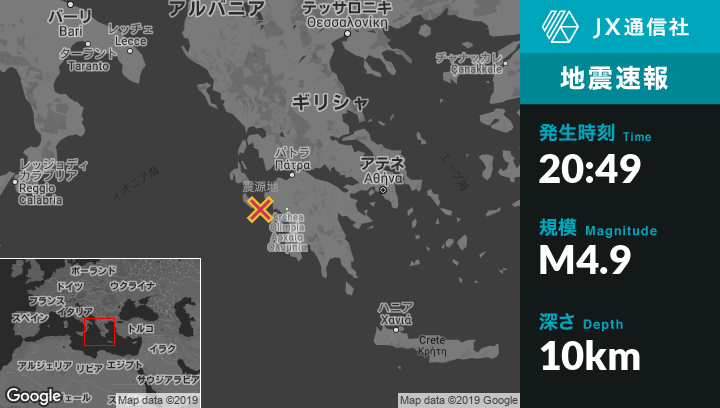 | 震源地 | ギリシャのZakynthosから東南東12kmの地点 |