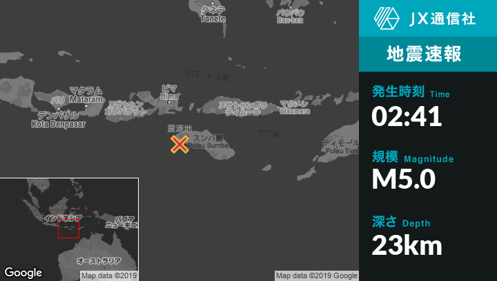 | 震源地 | インドネシアのNgondokandawuから西南西1kmの地点 |