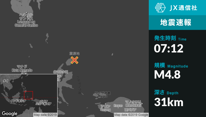 | 震源地 | インドネシアのTobeloから北東134kmの地点 |