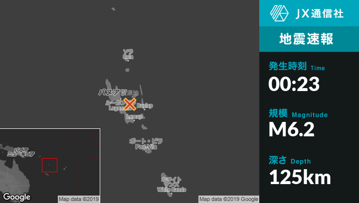 | 震源地 | バヌアツのLuganvilleから東南東48kmの地点 |