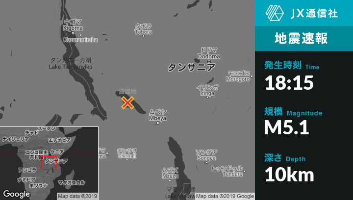 | 震源地 | タンザニアのSumbawangaから東53kmの地点 |