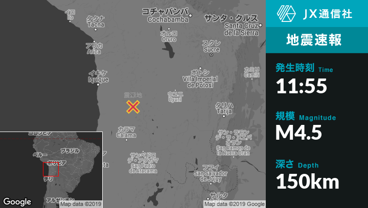 | 震源地 | チリのCalamaから北162kmの地点 |