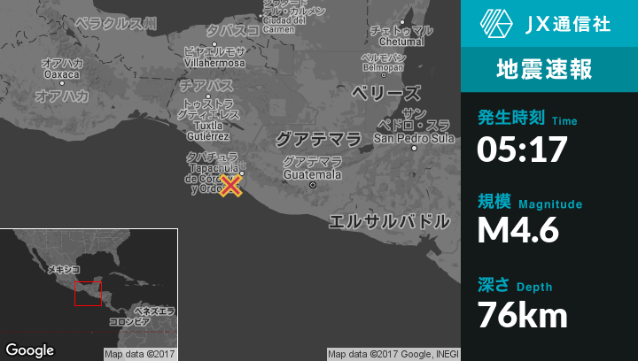 | 震源地 | メキシコのPuerto Maderoから西13kmの地点 |