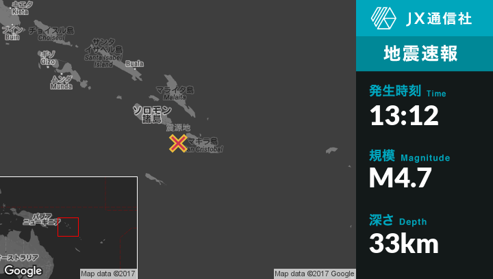 | 震源地 | ソロモン諸島のKirakiraから西98kmの地点 |