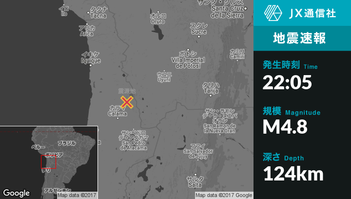 | 震源地 | チリのCalamaから北北東96kmの地点 |