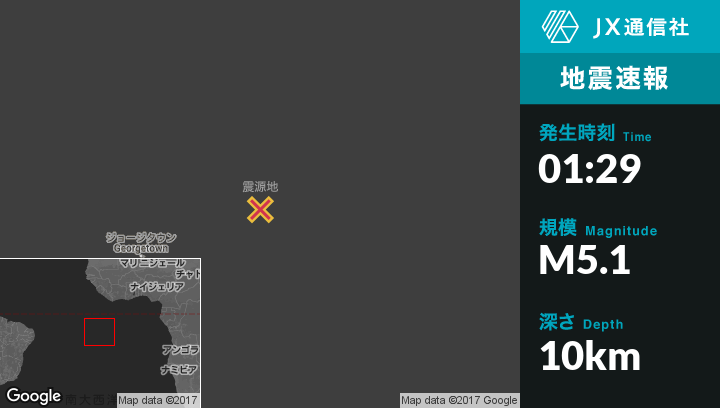 | 震源地 | セントヘレナのGeorgetownから東北東314kmの地点 |