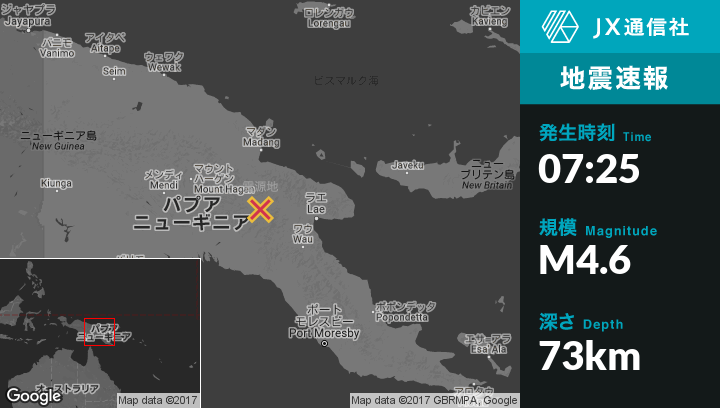 | 震源地 | パプアニューギニアのKainantuから南西17kmの地点 |