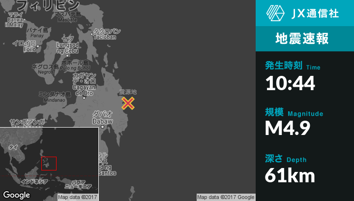 | 震源地 | フィリピンのBarcelonaから北東25kmの地点 |