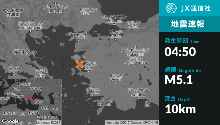 | 震源地 | ギリシャのPlomarionから南東12kmの地点 |