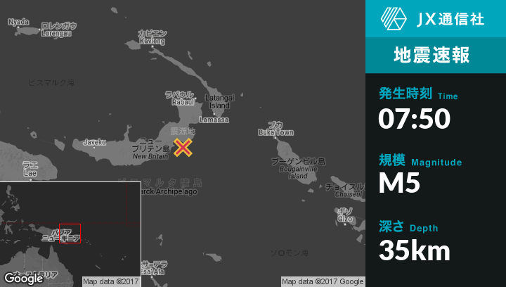 | 震源地 | パプアニューギニアのKokopoから南南西147kmの地点 |