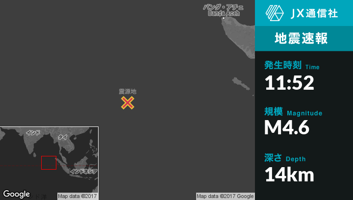 | 震源地 | インドネシアのSinabangから西601kmの地点 |
