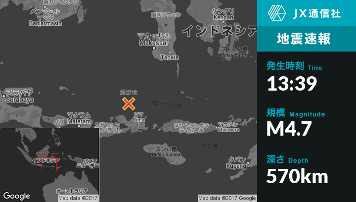 | 震源地 | インドネシアのSampunguから北北西90kmの地点 |