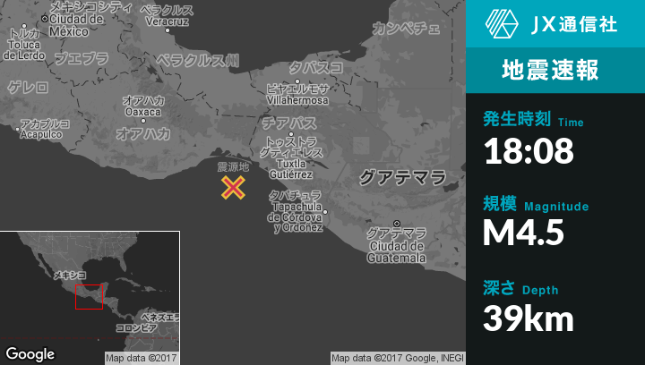 | 震源地 | メキシコのSan Francisco del Marから南70kmの地点 |