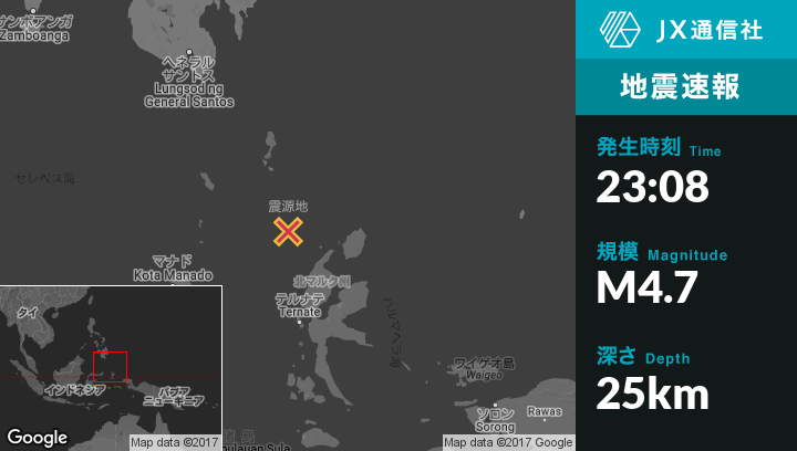 | 震源地 | インドネシアのTobeloから北西143kmの地点 |