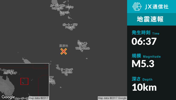 | 震源地 | バヌアツのIsangelから西160kmの地点 |
