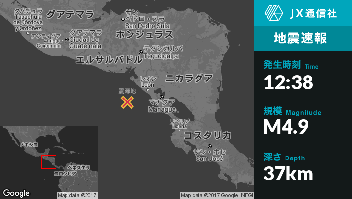 | 震源地 | ニカラグアのCorintoから南西86kmの地点 |