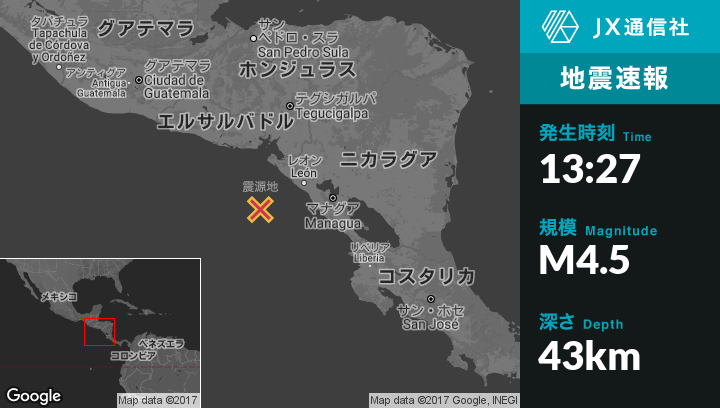 | 震源地 | ニカラグアのCorintoから南西91kmの地点 |