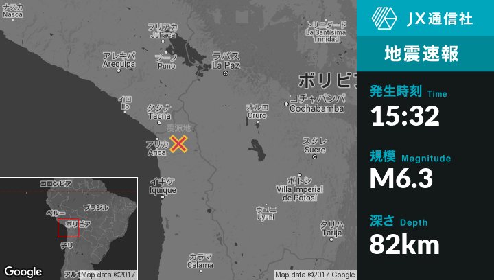 10月10日 15:32頃、チリのPutreから南南西36kmの地点でM6.3の地震がありました。