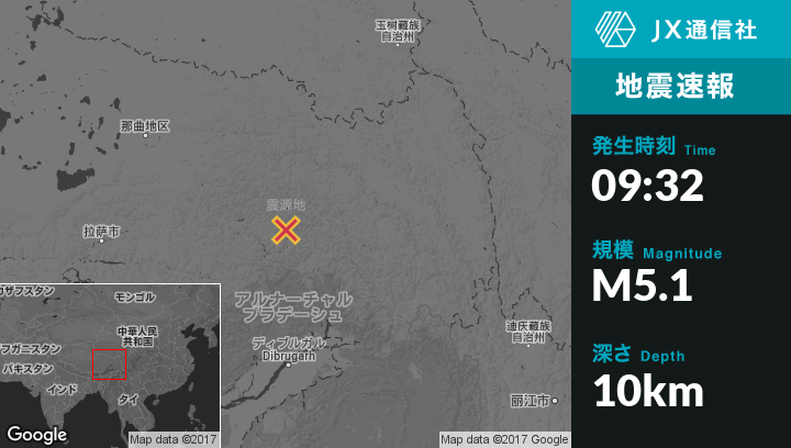 11月18日 09:32頃、中国のNyingchiから北東62kmの地点でM5.1の地震がありました。