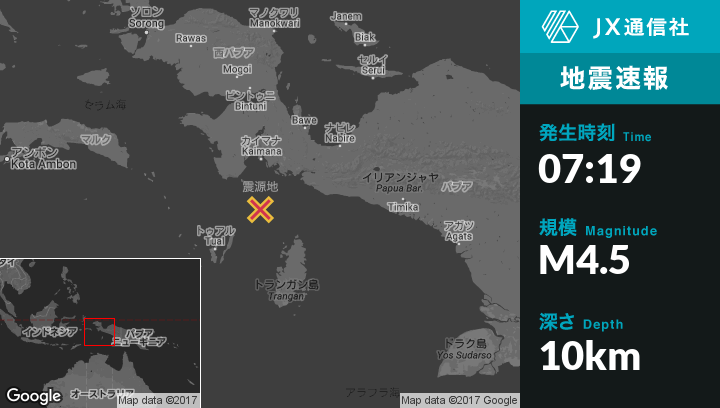| 震源地 | インドネシアのDoboから北北西134kmの地点 |