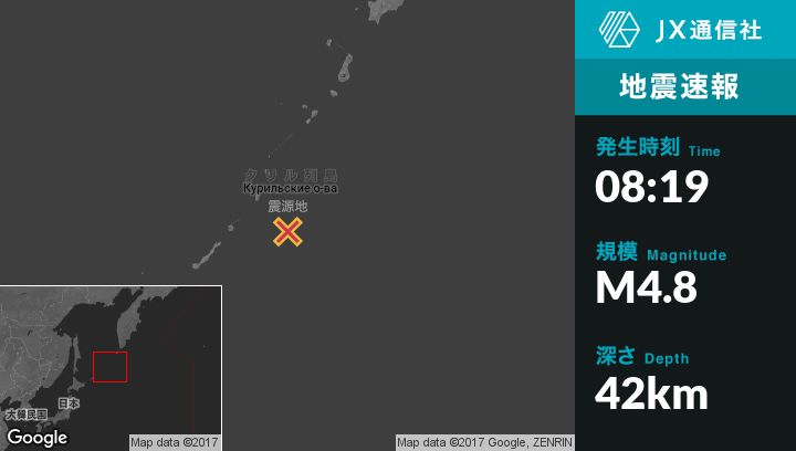 11月21日 08:19頃、ロシアのVostokから東南東390kmの地点でM4.8の地震がありました。