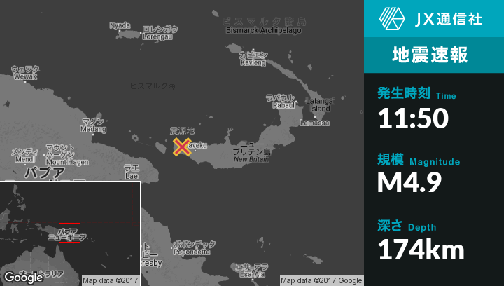 | 震源地 | パプアニューギニアのKandrianから北西133kmの地点 |