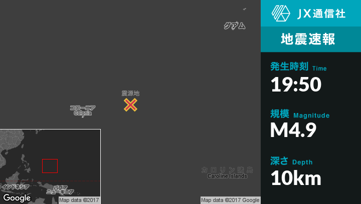 | 震源地 | ミクロネシアのFaisから北西56kmの地点 |