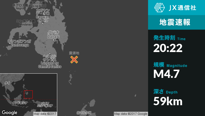 | 震源地 | フィリピンのPondaguitanから東南東115kmの地点 |