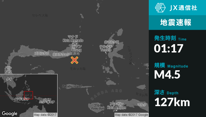| 震源地 | インドネシアのModayagから南東78kmの地点 |