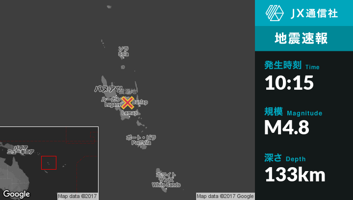12月09日 10:15頃、バヌアツのNorsupから北東52kmの地点でM4.8の地震がありました。