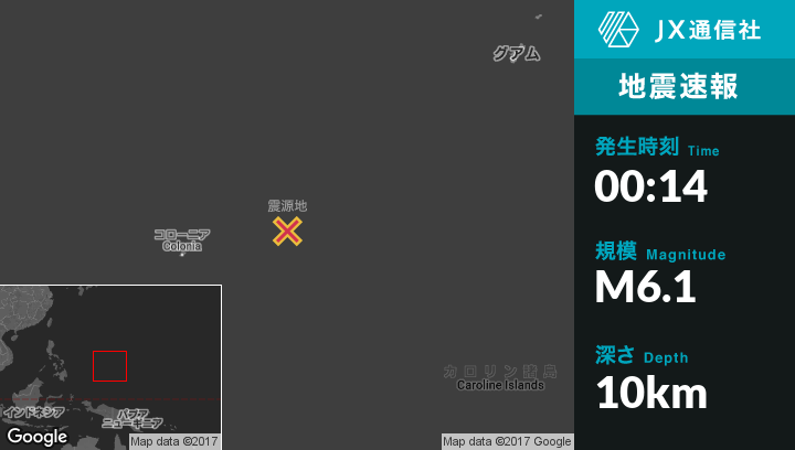 | 震源地 | ミクロネシアのFaisから北西49kmの地点 |