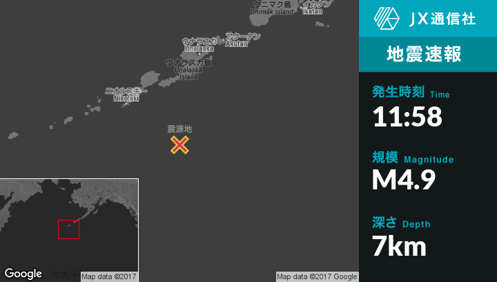 | 震源地 | アラスカのNikolskiから南東141kmの地点 |