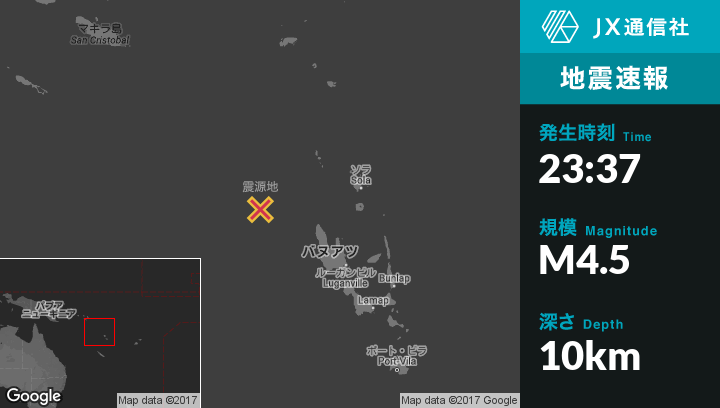 | 震源地 | バヌアツのPort-Olryから西北西206kmの地点 |
