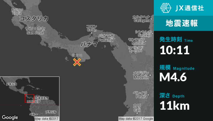 | 震源地 | パナマのLas Minasから南南西58kmの地点 |