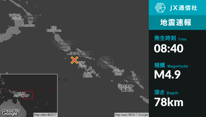 | 震源地 | ソロモン諸島のChirovangaから南南西89kmの地点 |