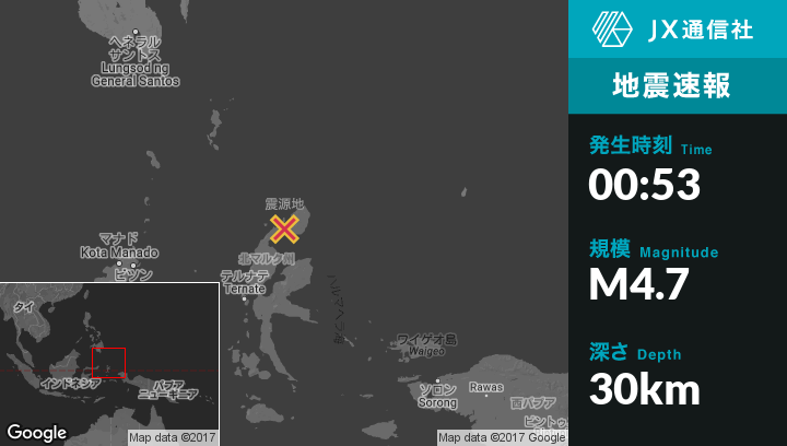 | 震源地 | インドネシアのTobeloから北北東64kmの地点 |