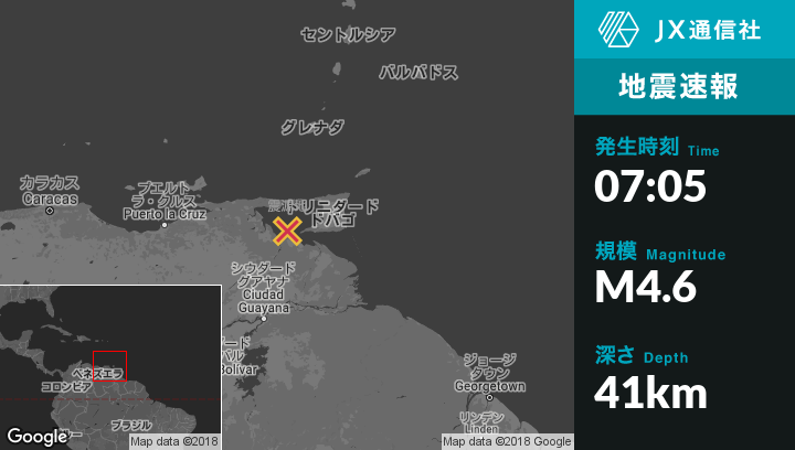 | 震源地 | ベネズエラのPedernalesから北北東27kmの地点 |