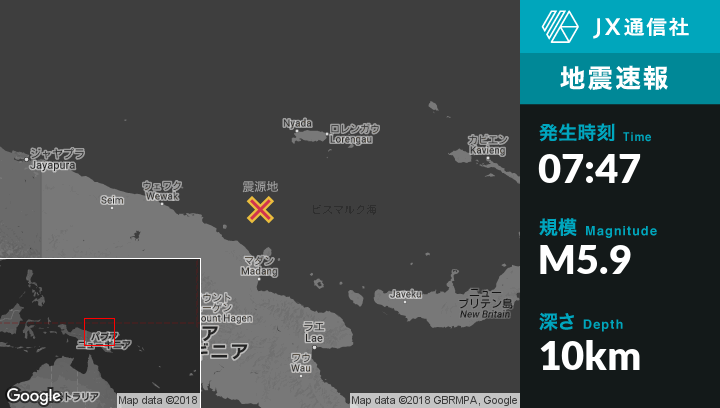 | 震源地 | パプアニューギニアのMadangから北182kmの地点 |