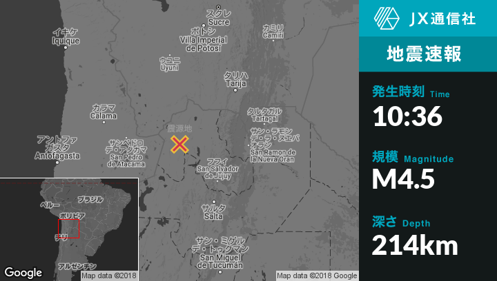 | 震源地 | アルゼンチンのEl Aguilarから西北西87kmの地点 |