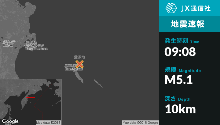 | 震源地 | ロシアのNikol'skoyeから北北東47kmの地点 |