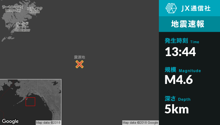 | 震源地 | アラスカのKodiakから南東316kmの地点 |
